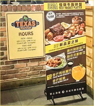 Banners and posters at the three Texas Roadhouse restaurants in Taiwan promoted U.S. beef brisket
