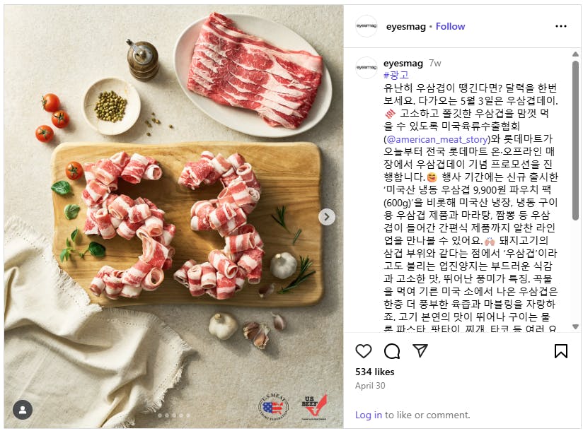 Lotte Mart provided additional points of sale in its stores and featured U.S. short plate in its weekly printed leaflets. USMEF support included a digital marketing campaign utilizing paid placement, influencers and USMEF’s social media channels. Funding support for the Lotte Mart promotion was provided by the Beef Checkoff Program.