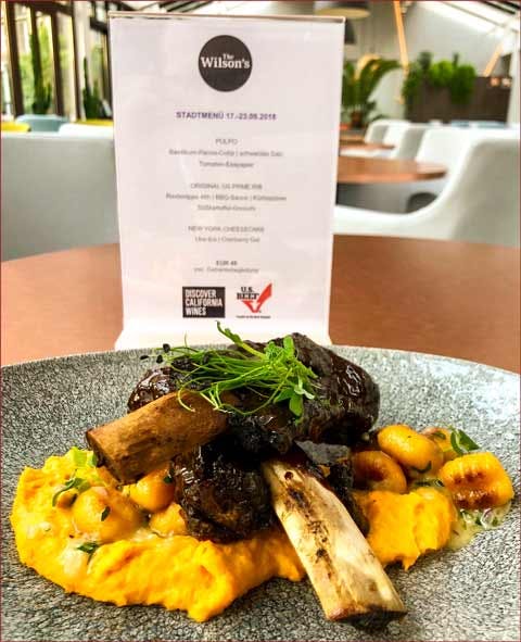 USDA’s Foreign Agricultural Service (FAS) office in Berlin organized the effort and invited USMEF, along with other American food industry organizations. Public food markets, exclusive dinners and a marquee event called “Stadt Menu” (city menu), where nearly 50 local restaurants creatively incorporated U.S. beef and California wine into special dinners, were part of the week’s festivities.