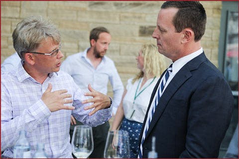 USMEF representative Yuri Barutkin, left, speaks with U.S. Ambassador Richard Grenell at a reception held at the U.S. Embassy in Berlin for restaurant owners, chefs, importers, distributors and journalists