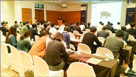 Alex Choi, USMEF assistant marketing manager in Korea, gave seminar participants an overview of U.S. pork and beef production and the current pricing situation. Choi also provided information on U.S. hog and cattle breeds, the USDA grading system and various marketing programs and branded products in the Korean market.