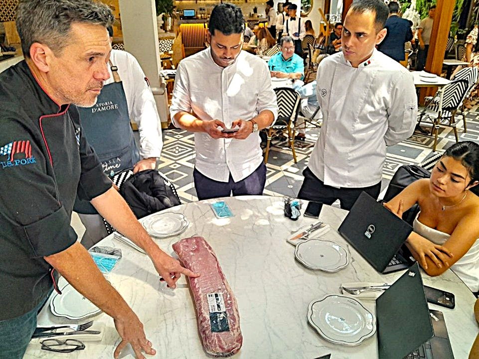 In meetings that began late last year, USMEF Meat Merchandiser Camilo Lopez and Chef Nicolas Díaz worked with the restaurant on the development of a new menu featuring three U.S. pork loin cuts. For the July 2025 promotional launch of the new menu, USMEF also developed several marketing and promotional strategies with the restaurant’s founder. The initial purchase for the new menu will include 4.5 metric tons (mt) of U.S. pork.