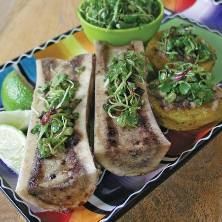 Roasted bison marrow bones with polenta and southwest salad (National Bison Association photo)