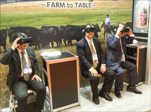 Visitors to the USMEF booth participated in an “American beef virtual tour: Farm to Table,” featuring an American ranch and feedlot through a virtual reality video program