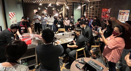 Sabrina Yin, USMEF-ASEAN director, led a cutting demonstration, discussion and sampling session for participating restaurants