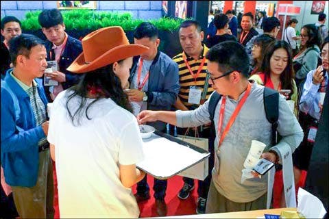 Tasting samples of U.S. beef and pork were offered to visitors to the USMEF booth during SIAL China