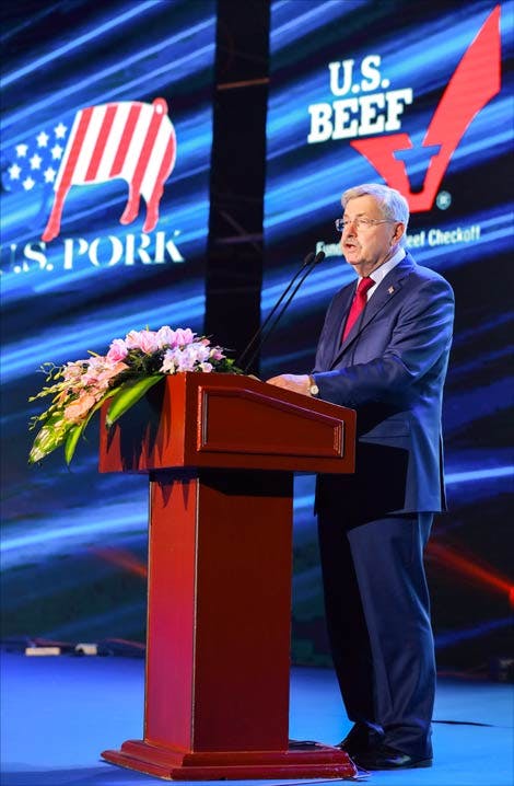 U.S. Ambassador to China Terry Branstad addresses nearly 900 attendees at the U.S. Meat Traders Club Reception