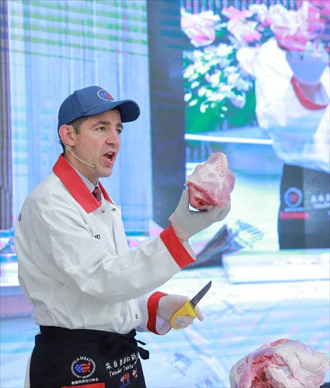 U.S. beef and pork cuts were highlighted during chef demonstrations at the U.S. Meat Traders Club Reception in Shanghai