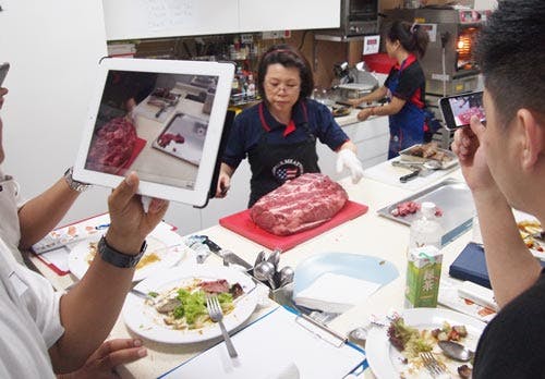 U.S. beef top blade muscle, short plate, chuck tender, chuck roll, chuck flap tail and chuck short ribs were included in the cutting and cooking demonstration. Participants also had the opportunity to sample dishes including roast short plate and chuck tender carpaccio.In the evening, USMEF brought the seminar participants on a retail visit to Meidi-Ya supermarket to view the wide variety of meat products available in Singapore including U.S. beef and pork. The day concluded with dinner at Tomo Izakaya, a popular Japanese restaurant that serves U.S. beef and pork in both traditional and modern Japanese styles.