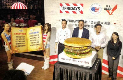 A giant U.S. beef burger helped kick off “U.S. Burger Month” at TGI Friday’s in Taiwan