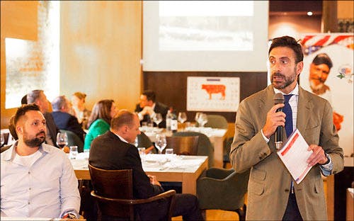 USMEF representative Felipe Macias explains the advantages of U.S. beef to Croatian chefs and food buyers