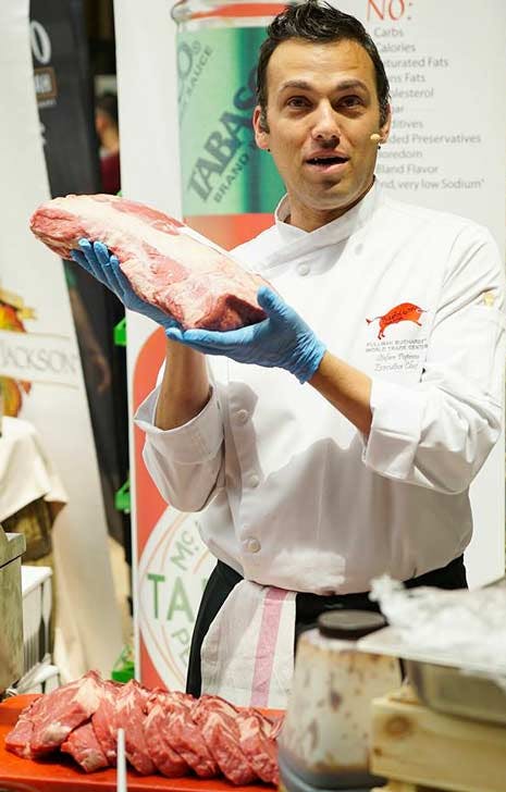 Chef Stefan Popescu prepares U.S. beef at the Taste Ambassadors exhibition in Bucharest, Romania
