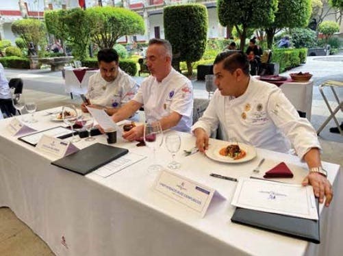 Judges in the Thierry Bloue Trophy young chefs contest in Puerto Vallarta, Mexico, sample U.S. pork dishes prepared by competing chefs