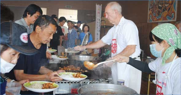 Seng and USMEF-Tokyo staff were joined by a group of canoe instructors to serve the meals last week. The canoe instructors have been actively involved in the relief effort since the tsunami struck moments after the March 11 earthquake. They ventured out in their canoes to rescue people who were swept out to sea by the 90-foot waves.