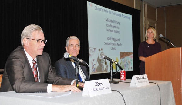 USMEF’s Joel Haggard and Michael Drury of McVean Trading discuss the state of China’s economy in a session moderated by USMEF Chair Leann Saunders