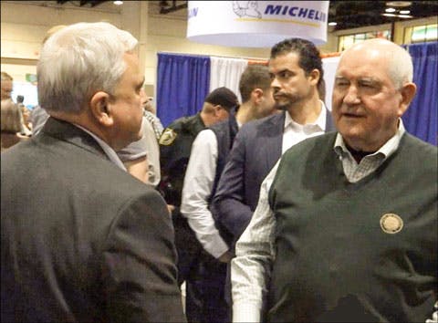 U.S. Agriculture Secretary Sonny Perdue was the keynote speaker in the general session and later stopped by the USMEF booth, where he was greeted by USMEF Chair Conley Nelson.