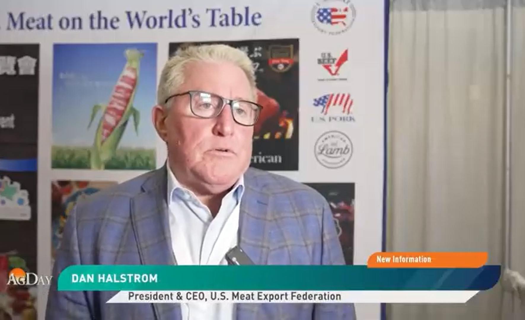 USMEF President and CEO Dan Halstrom recently joined AgDay anchor Clinton Griffiths for an in-depth discussion of the factors impacting global demand for U.S. red meat. Halstrom noted that demand remains resilient, even in the face of higher prices, though trade obstacles have halted beef exports to China and negatively impacted pork shipments as well.
