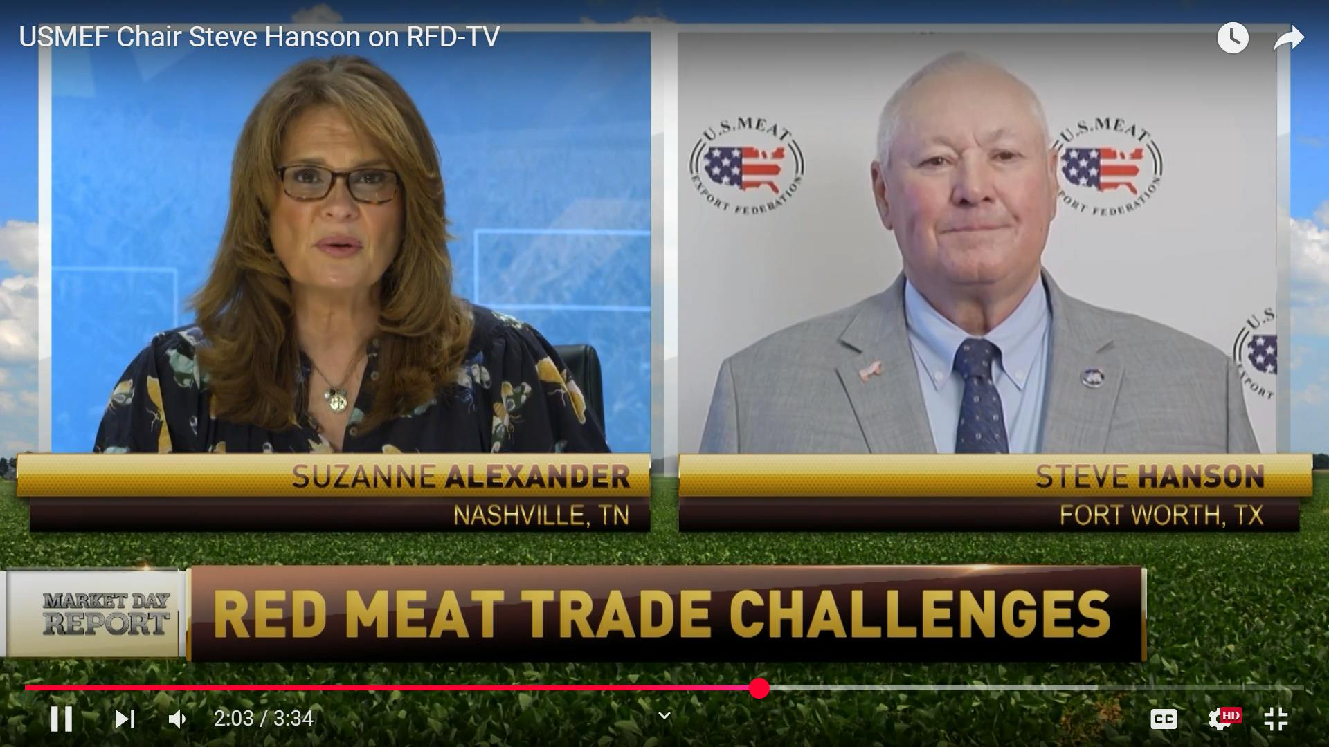 USMEF President and CEO Dan Halstrom spoke with RFD-TV Anchor Suzanne Alexander on how China’s prohibitively high retaliatory duties have effectively halted U.S. pork and beef exports to China. Watch the interview HERE.