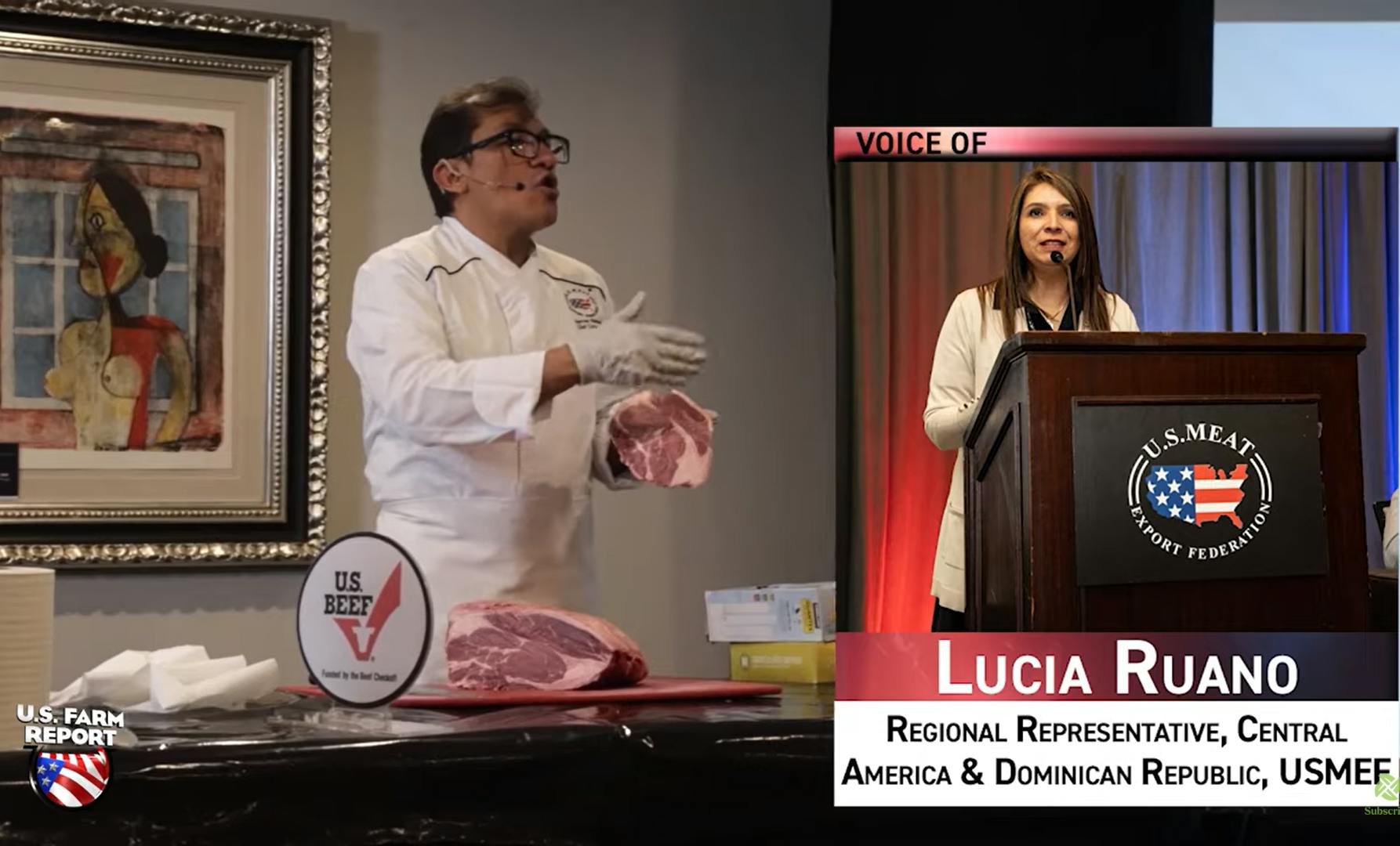 The segment features comments from Lucia Ruano, USMEF representative in the region, who explains that Central American consumers have a growing appetite for higher-end beef cuts, many of which are purchased at meat boutiques. USMEF helps support these sales through cut-specific promotions and educational seminars.